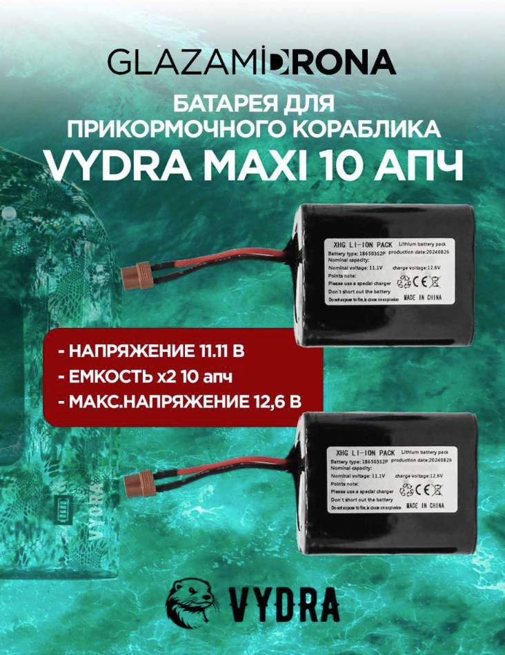 Дополнительный аккумулятор для прикормочного кораблика VYDRA MAXI увеличенной емкости.