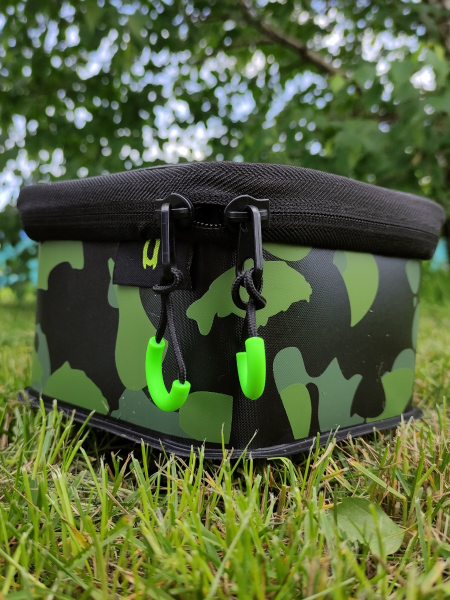 Корпус сумки выполнен из ЭВА материала, который является экологически безопасным и чистым, обладает хорошей гибкостью, эластичностью, высоким сопротивлением к истиранию, выцветанию, растрескиванию. Благодаря использованию ЭВА, сумки не деформируются и не портятся под воздействием атмосферных явлений. Также сумки абсолютно не впитывают запахи, поэтому диапазон их применения настолько широк, что их можно смело использовать даже для приговления прикормки, стиков, применяя в том числе ликвиды.