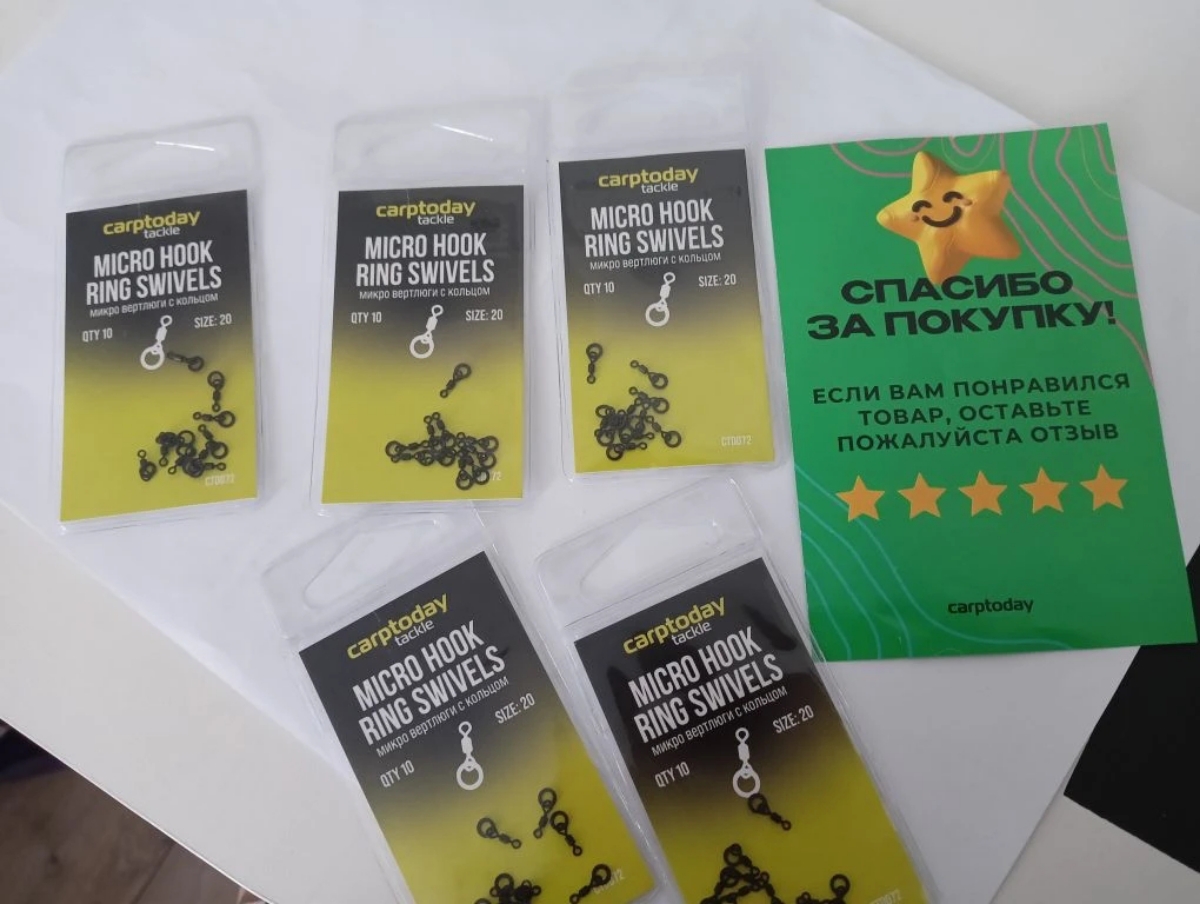 Carptoday Micro Hook Ring Swivels - микро вертлюги с шарнирным колечком, которые незаменимы в ряде эффективных оснасток и идеальны для крепления плавающих, сбалансированных или тонущих насадок на цевье крючка.